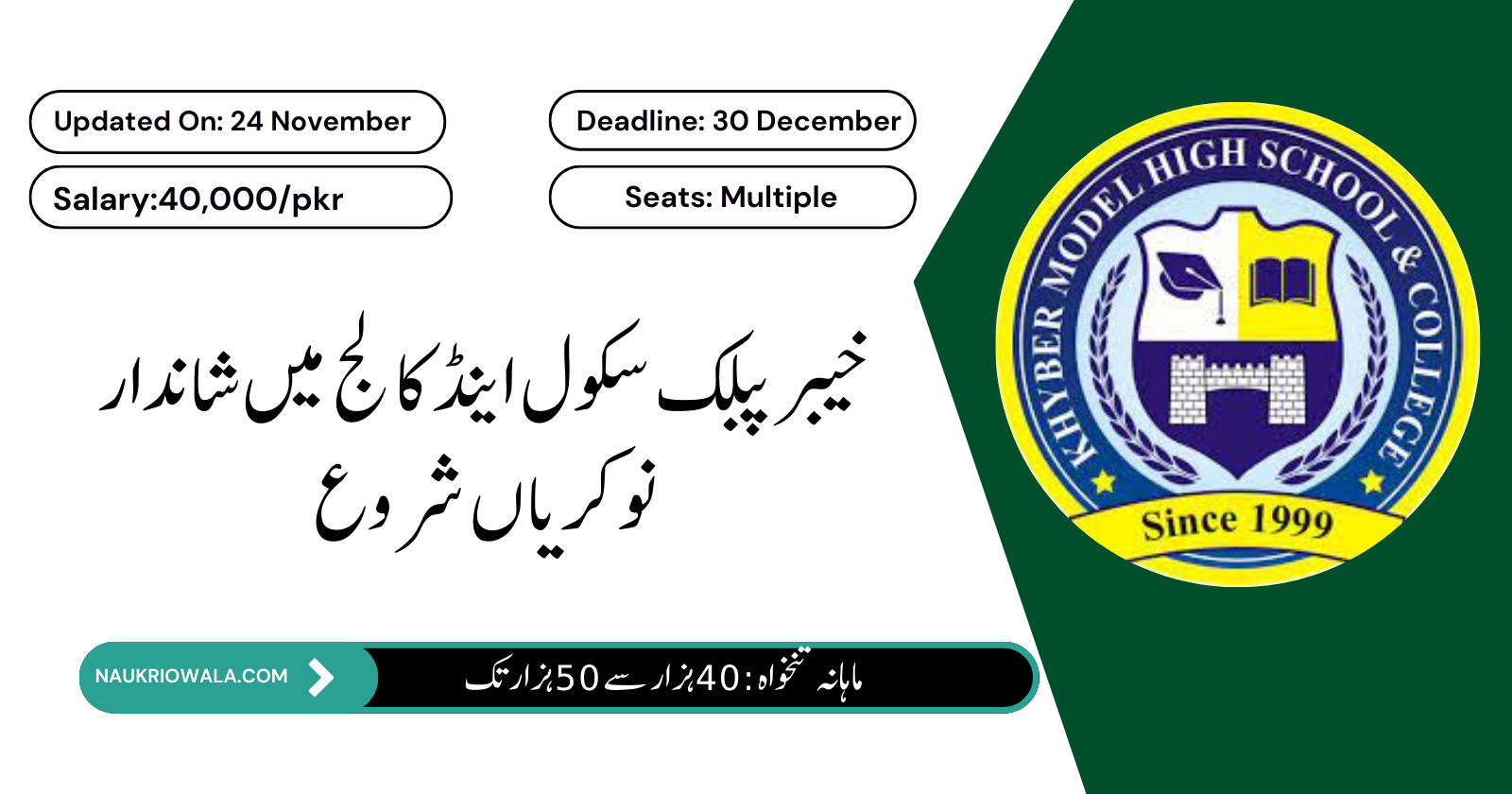 If you want to work for a private organization, then Khyber Public School and College Jobs is for you. Now you can apply online for these jobs, so you are in the right place to do your next job in Peshawar. For further details, read the full post carefully.