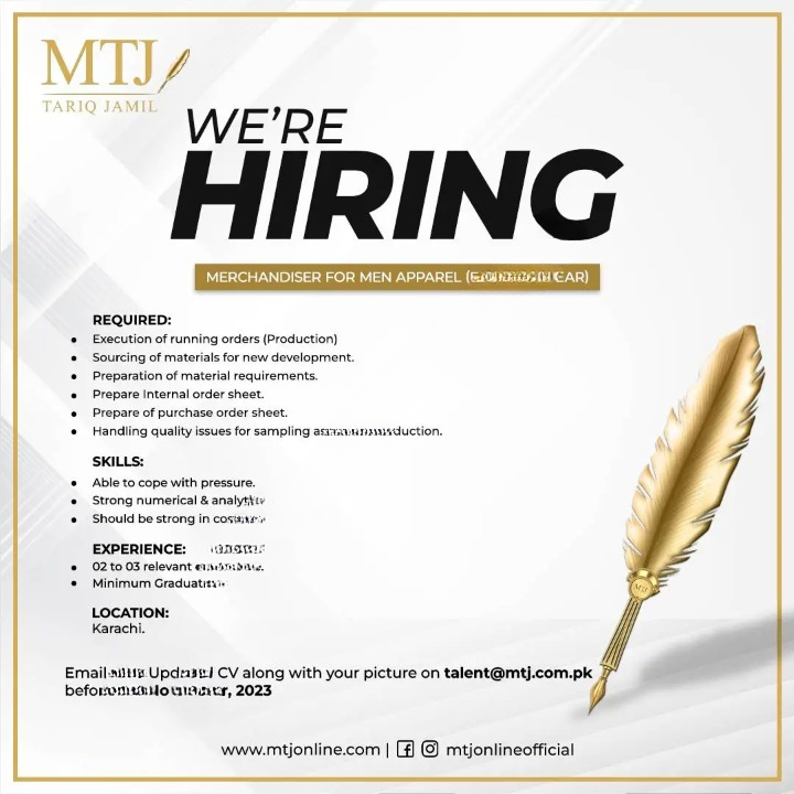 Official Advertisement for MTJ Tariq Jameel Jobs