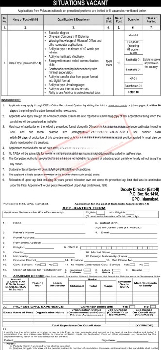 - Applicants may apply through ECP’s Online Recruitment System by visiting the link: www.ecp.oov.pk or jobs.ecp.gov.pk within 20 days of the printing of the advertisement in the newspaper.