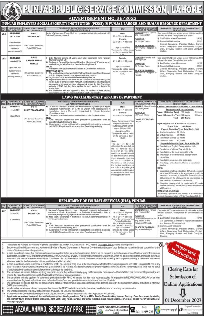 12. The last date to apply online for PPSC jobs is December 1, 2023.